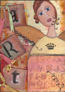 Yesterday I spent the day with Bevlea Ross and Lucy Leatham and we were working on page 23 of Kelly Rae Roberts book called Taking Flight. If you don't have this book then I recommend you getting it, it is really worth the purchase. If you are a person that purchases books, flicks through them and that's it, then I really recommend you starting to work your way through them they are fun, heaps of fun. consider getting together with a few friends if you need the motivation and go for it.